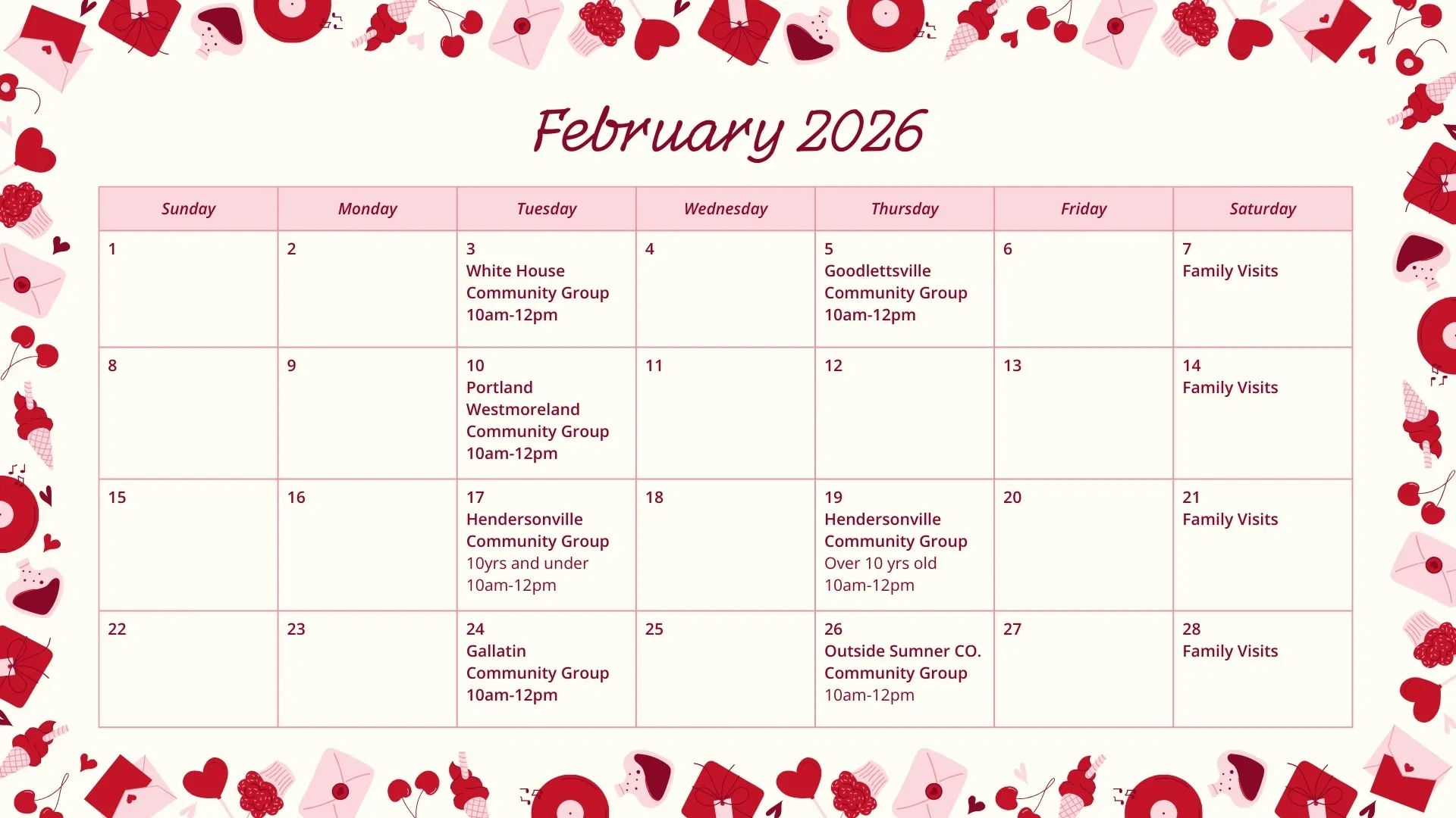 February 3rd and February 5th days are CANCELED. Please make plans to visit on a different Community Day!